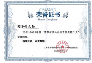 副院长张文勤喜获2022—2023年度“江苏省涉外办学工作先进个人”后,5月21日上午,我校在仙林校区行政楼二楼报告厅召开的国际化重点工作推进会中,大乐透