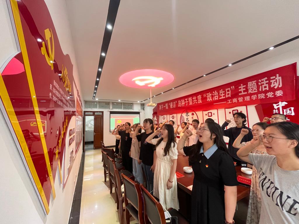 党委书记张杰老师表示:“开展廉洁文化教育、共度“政治生日”是提升党员政治素养、不断夯实信仰根基、补足精神之钙的必要手段。学院师生党员要始终守住自己的底线、铭记入党初心、学习真知识、淬炼真本领,发挥卓越才能,不辜负这个伟大的时代,以优异的成绩向建党102周年献礼。”最后,大家通过重温入党誓词,接受党性的洗礼。那铿锵有力的誓言,在房间中回荡,也在每个人的内心深处回响。