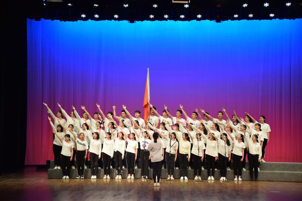 比赛在旅游1701班的歌声中拉开序幕,一首《红星闪闪》为我们展现了新长征路上一代代奋发图强的新景象。人资1701班演唱的《红旗飘飘》激情昂扬,唱出了青年学子对祖国的热爱与自豪之情。工商1702班演唱的《我们走在大路上》表达了对中国特色社会主义道路自信、理论自信、制度自信、文化自信。工商1801班带来的《我爱你中国》、旅游1801班带来的《歌唱祖国》以及人资1801班带来的《我和我的祖国》,将同学们对祖国母亲的爱款款道来,充分表达了对祖国最炽热、最真诚的情感。人资1702班用一首《仰望星空》告诉我们,追梦的道路虽然崎岖,但不懈的汗水与坚持必将带领我们抵达梦想的天空。工商1802班带来的《歌声与微笑》,将幸福的种子通过真诚的歌声洒向现场的每一位观众。工商1701班带来的《国家》将嘹亮的歌声与饱含真情的手语操相结合,整齐划一的动作将“国”与“家”相连。人资1802班带来的《少年中国说》气势磅礴,彰显了新时代青年的豪情与担当。