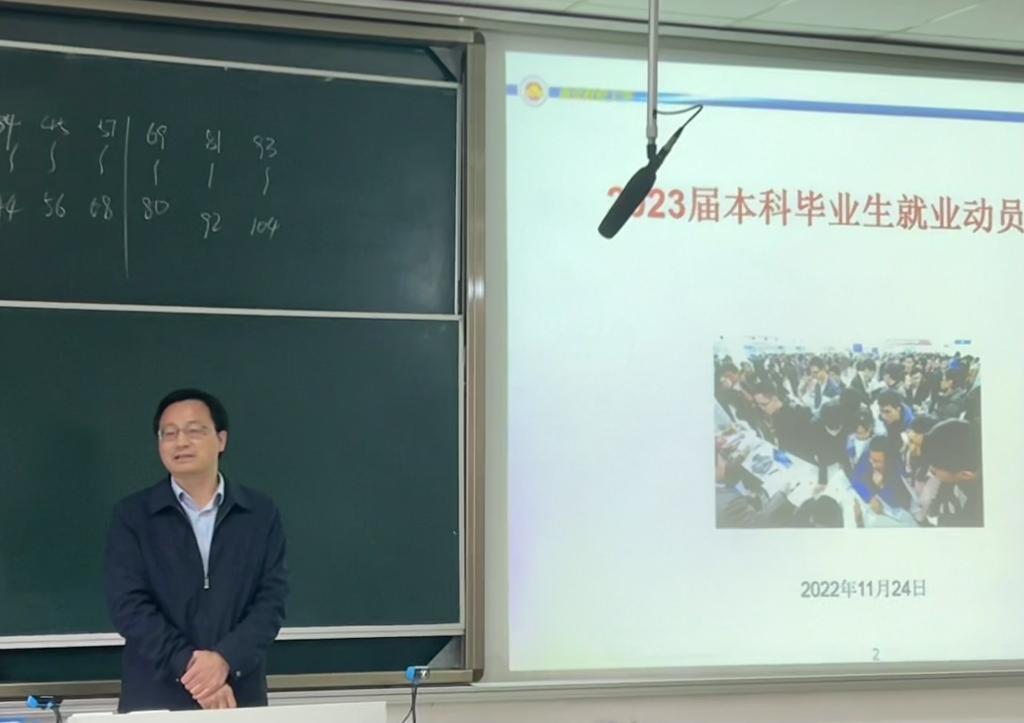 11月24日下午,工商学院在博远楼103举办“青春正拼搏,献礼党的二十大”主题教育活动暨2023届毕业生就业动员大会,学院党委书记杨林,党委副书记全真真,学院副院长张文勤,毕业班辅导员和学院2023届全体毕业生参加会议。