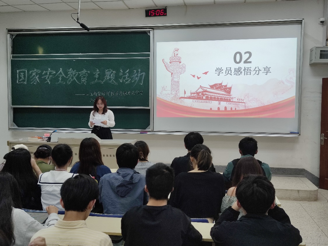 活动伊始,主持人罗乔珍向同学们讲解了国家安全的由来、内涵及重要意义,让同学们深刻意识到国家安全无小事,要积极参与到维护国家安全的行动中来。随后,全体成员共同观看“千万师生同上一堂国家安全教育课”公开课,课程从维护国家安全的社会生活、电信诈骗、网络和数据安全等三方面介绍如何维护国家安全,深入浅出地向同学们传递安全教育信息,教育学生牢固树立国家安全意识,深入贯彻“国家安全一切为了人民,一切依靠人民”的理念。