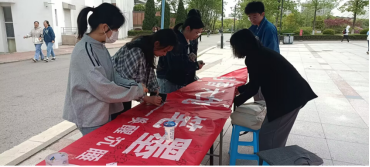 签名现场气氛活跃,醒目的签名横幅吸引了很多同学驻足。在了解了活动内容后,同学们踊跃参与,坚定地签下了自己的名字,以饱满的热情、认真的态度在笔下与书郑重相约,倾注自己对阅读的热爱,立下读好书,好读书的决心。