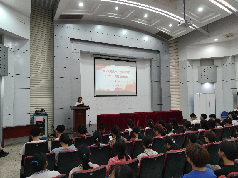 分团委及学生会各部门负责人、学院辩论队负责人依次上台进行招新宣讲。各部门负责人分别从部门简介、负责人介绍、工作规划、团建活动等几个方面展开宣讲,他们朝气蓬勃,自信大方、热情真诚的发言赢得了现场新生的热烈掌声。