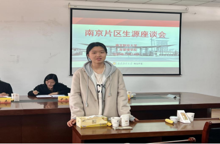 党委书记张杰对南京片区招生情况给予了充分肯定,对学生选择我校以及支持我校招生工作表示感谢。她希望每位同学都能在大学期间充分利用丰富多彩的学习资源和平台,与优秀的人同行,让自己变得更加优秀。此外,她表示“希望每位同学都能做好高校与高中的沟通使者,将南财的信息传递给更多的学弟学妹。”本次新生见面会还邀请了南京片区的学生代表—人资2102班吴婧欢同学从专业学习、思想信念、学生工作以及社会实践四个方面进行分享交流,并对寒假“母校行”和暑期志愿填报招生宣传工作进行详细介绍。