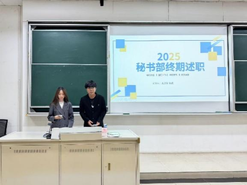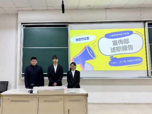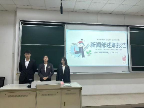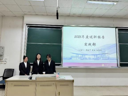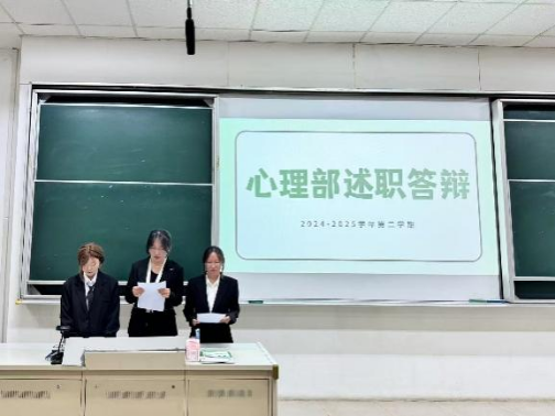 在述职答辩环节,各部门代表围绕本学期工作成果、现存问题及未来规划进行汇报,评审团进行现场提问,重点考察部门工作的落实细节、问题解决思路及创新举措,各部门答辩者从容应答。