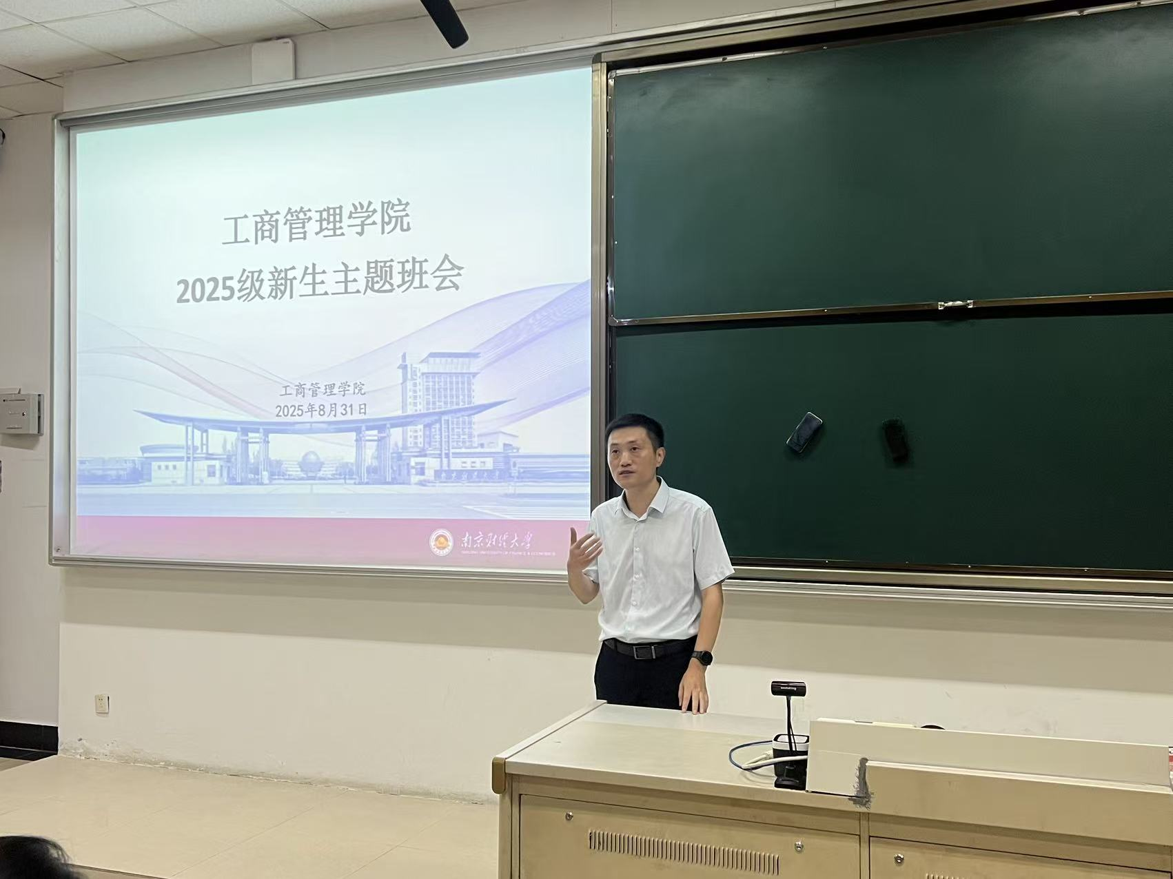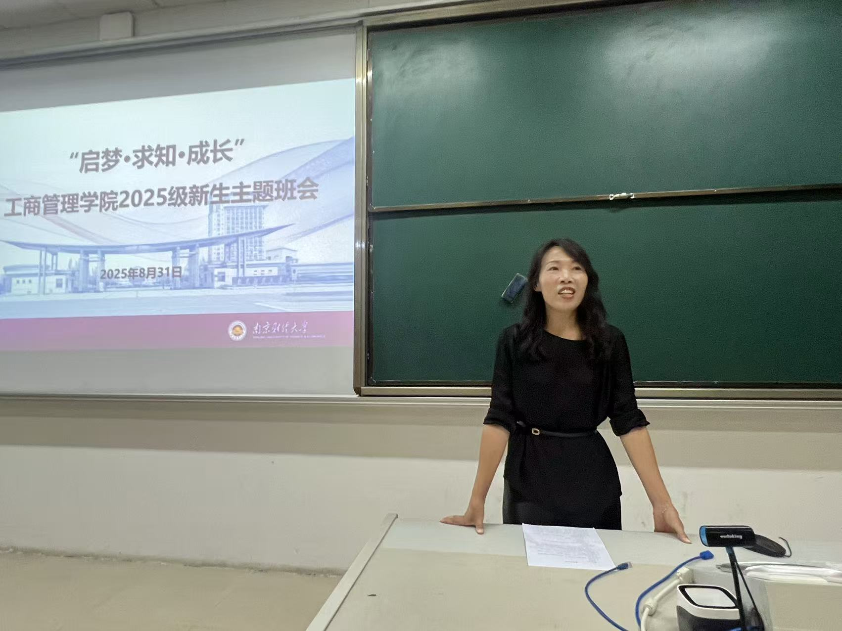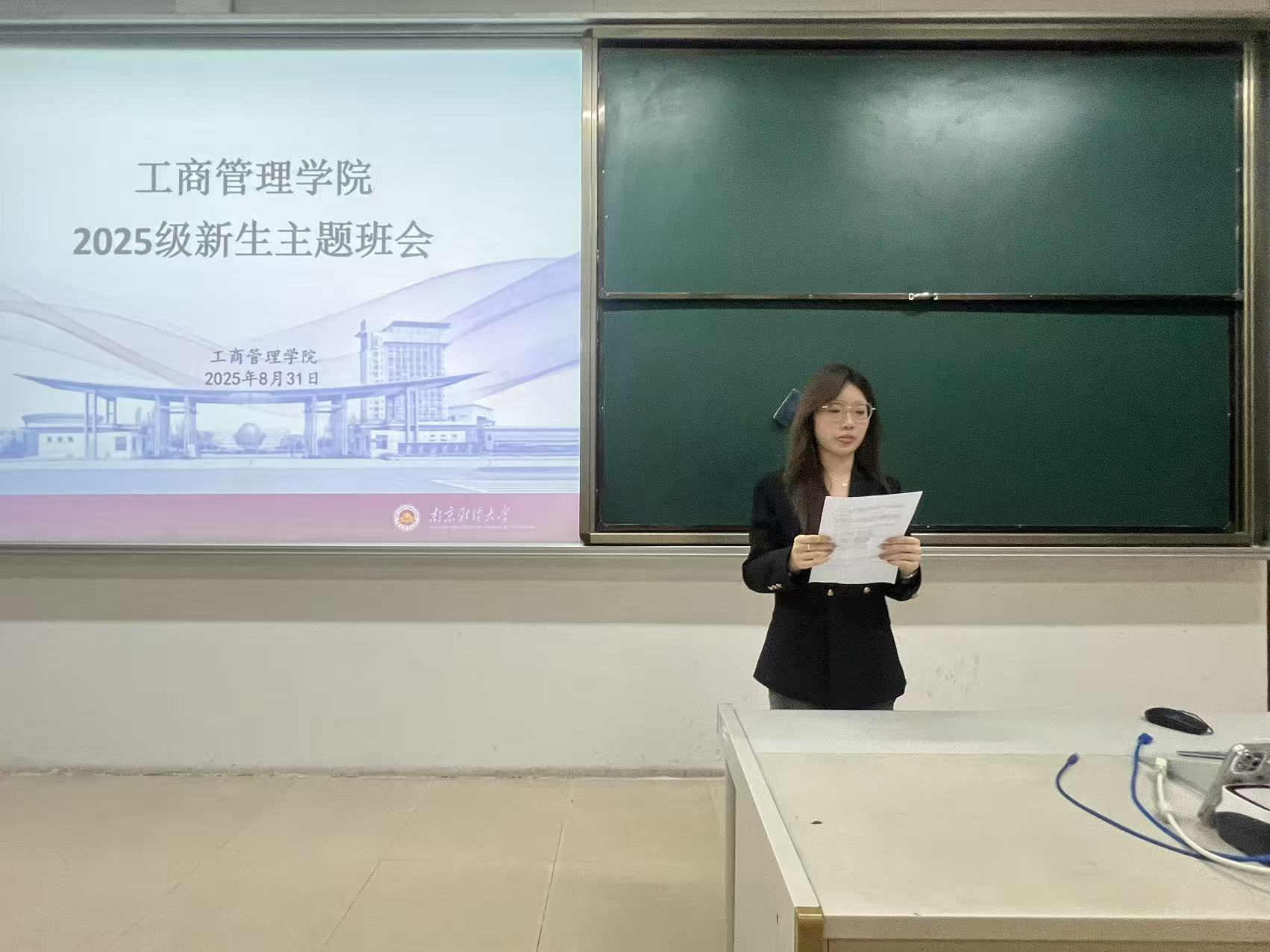 于博远楼JC210教室举行2025级新生主题班会。副院长张文勤,2025级本科新生辅导员赵菲、冯玲、赵雪,各班新生班级助理以及2025级全体本科新生参加本次班会。班会由院学生会新闻部部长、人资2402班李紫函主持。
