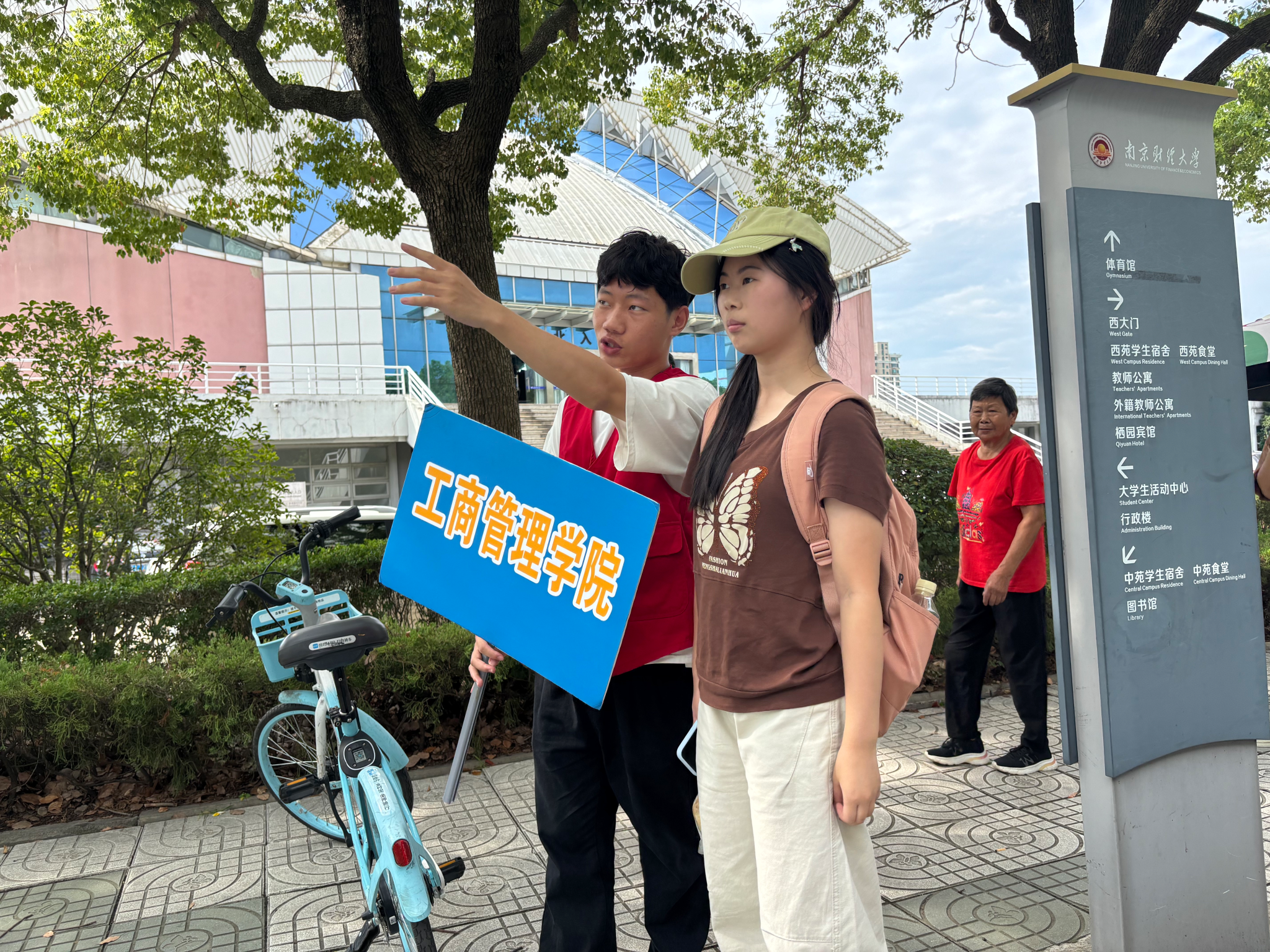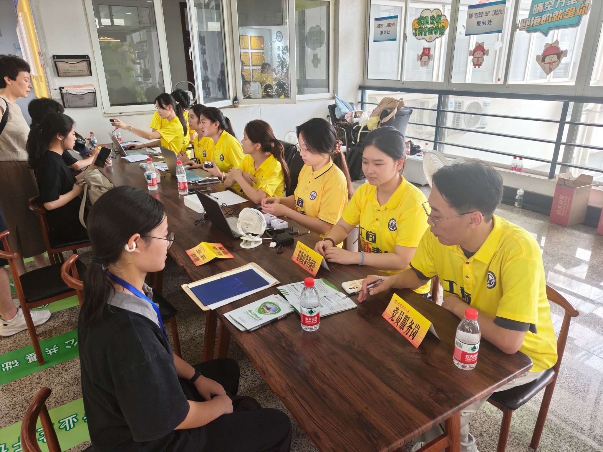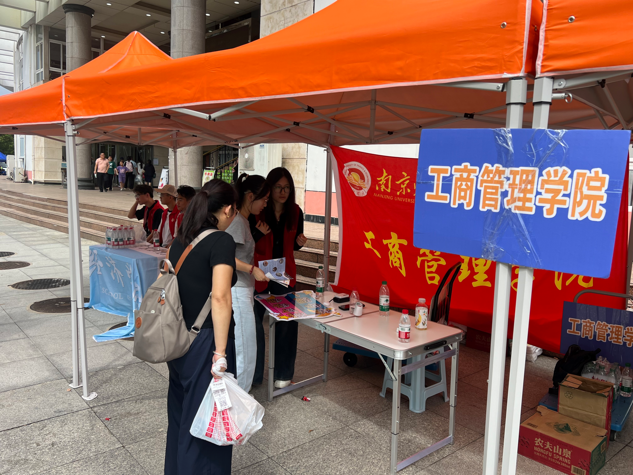 清晨起,新生陆续抵达校园,身着红色马甲的志愿者主动上前协助搬运、指引路线,宿舍楼下外场服务点也由学生党员与院学生会成员值守,为新生答疑解惑、送上暖心问候,迅速消解了新生初入校园的陌生感。德济楼“商·启新章”迎新区以各专业主干课和公共基础课名称设计地贴,引导新生抵达报到点,高效规范完成报到注册流程;“旅·阅世界”环节通过电子盲盒抽取校园主题文创礼品,激发新生对大学生活的探索兴趣;“人·成大观”拼图共创区成为迎新日的亮点。每位新生随机领取带有南财文化符号的拼图碎片,通过协作拼合成完整画卷。绿色通道与资助政策宣传同步开展,保障每位学子无忧入学。该拼图作品将在学院长期展示,持续传递协同共进的育人理念。