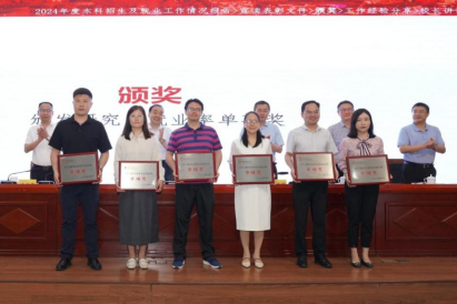 荣获“省内本科招生工作先进单位一等奖”、“省外本科招生工作先进单位奖”和“研究生就业率单项奖”,学院党委书记张杰、院长万绪才、党委副书记尹海燕上台领奖。院长万绪才就本科招生工作进行了交流发言。