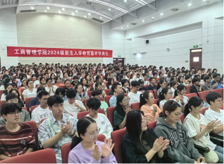 院长万绪才教授致辞,为新生上“开学第一课”。万绪才院长代表学校和学院向2024级全体本科新同学表示热烈的欢迎和衷心的祝贺。他从城市到学校再到学院,层层递进向新生介绍了学校悠久的发展历史以及学院的优势学科、优势专业等情况。万院长引经据典从提升认知水平和成就精彩人生两个方面,勉励新生要正确认知“大学”,正确认识“管理”,牢记“自谦、自信、务实、超越”的校训,要自信、务实、执着,要立大志、磨炼意志、培养良好品质,提高综合素质,努力成长为堪当时代重任的工商才俊。