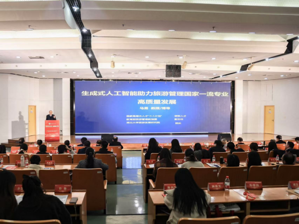 主旨报告环节,马勇教授、张捷教授、陆林教授、中南财经政法大学邓爱民教授、复旦大学巴兆祥教授、中国海洋大学张广海教授、浙江工商大学易开刚教授、厦门大学林德荣教授、上海商学院姜红教授、南开大学陈晔教授、浙江大学应天煜教授和中山大学罗秋菊教授分别就“AIGC赋能旅游管理国家一流专业高质量发展的解构与模式重构”“旅游科普迫在眉睫:旅游学科科学性和专业性的公众普及和公众认同”“专业生态:旅游管理专业建设的机遇与挑战”“新质生产力驱动下的旅游管理人才培养创新模式与应对策略——适应旅游业的新动向与新挑战”“城市远郊传统文化景区的困境与突围”“关于我国旅游管理专业建设与学科发展的几点认识”“智慧时代旅游管理专业教学改革思考”“人工智能促进泛酒店科研范式改革的思考与探索”“提高MTA人才培养水平,推动旅游业高质量发展”“数字时代旅游学科发展的思考”“Z世代新消费主义的新旅游:特征与趋势”作主旨报告。