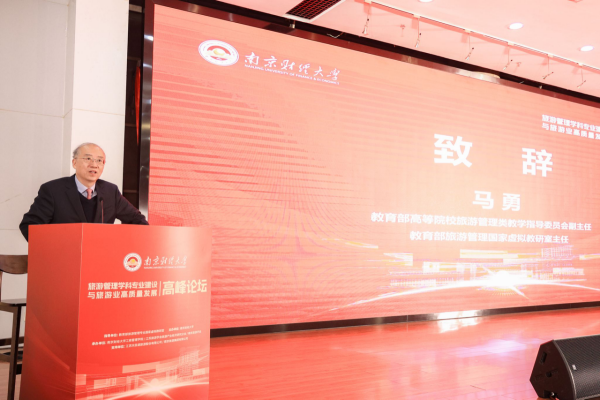教育部高等院校旅游管理类教指委副主任、教育部旅游管理专业国家虚拟教研室主任、湖北大学马勇教授致辞