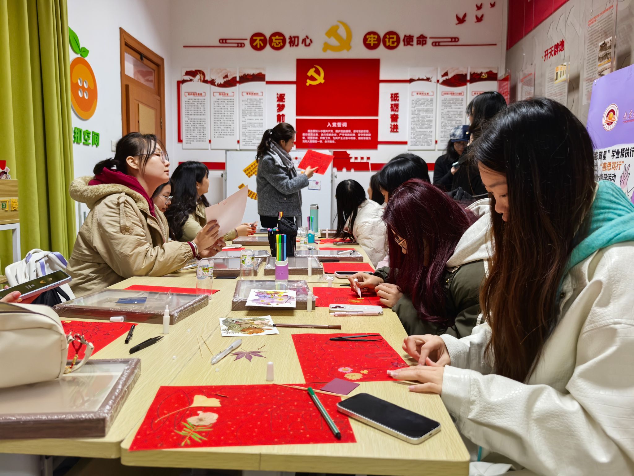 3月4日,"探秘非遗·绘出心境"女生节特别活动在"纽扣空间"学生社区展开。分团委书记赵雪运用"房树人"绘画心理分析技术,引导学生通过绘画表达探索家庭动力、心理成长轨迹与人格特征。在非遗押花艺术创作环节,学生将传统植物拓印技法与心理画结合,创作出承载自我认知的押花相框。党委副书记尹海燕表示,活动通过"表达-分享-赋能"的成长闭环,实现了传统文化浸润与心理健康教育的有机融合。