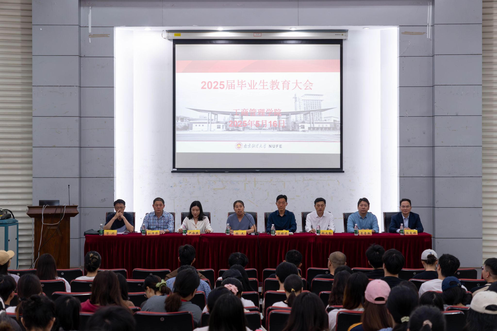 在德经楼报告厅隆重举行2025届毕业生教育大会。院党委书记张杰、院长万绪才、副书记尹海燕,副院长张文勤、刘泽华、李召敏,教师代表万兴,优秀校友代表、南京旅游集团紫金山庄副书记陈复帅以及2025届全体毕业班辅导员和毕业生参加了本次大会,会议由院党委书记张杰主持。
