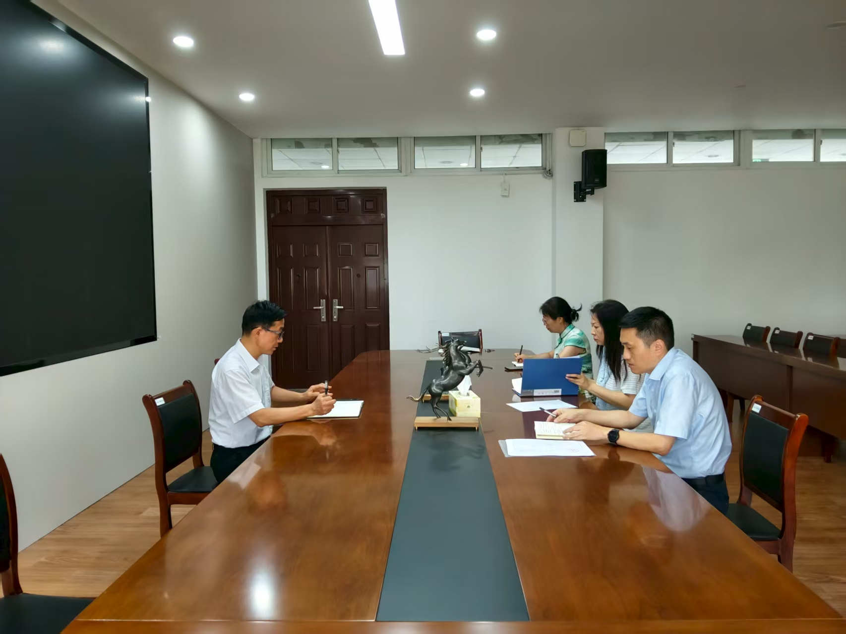在德济楼408会议室召开工商管理(环境商务)合作办学项目评估工作会议。会议由院长万绪才主持,副院长张文勤、工商管理(环境商务)合作办学项目主任文婷、外事秘书喻洁等参加会议。