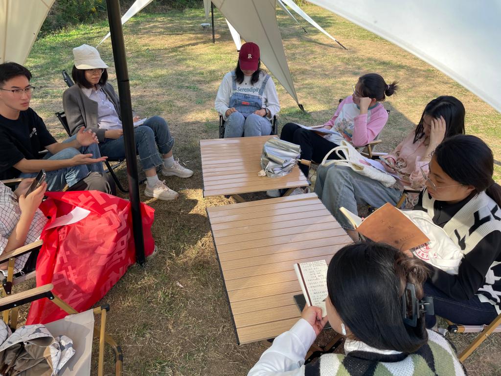随后,同学们在草坪围坐开展忆苦思甜分享会,大家分别讲述了长辈先烈们在艰苦岁月的奋斗故事,激励大家在红色故事中忆苦思甜,正确认识党的光荣历史,不忘初心,砥砺前行。党员陈卢晓同学分享了红军过草地的故事,讲述了红军行军途中的行难、食难、御寒难和宿营难等重重困难,表示当代青年要珍惜来之不易的和平,继续以顽强拼搏的意志和不畏艰难的精神,在新时代续写新的长征。团员滕若薇同学讲述了其外公外婆知青时期在艰难困苦的环境中,克服重重挑战,在新的岗位贡献新的价值的故事,激励当代青年艰苦奋斗,为新时代的中国建设贡献力量。最后,学院研究生会主席刘亚对同学们的分享进行了总结,号召大家继承和发扬老一辈共产党人勤奋进取、吃苦耐劳的优良传统,希望同学们在今后的学习生活中继续发扬艰苦奋斗精神,以实际行动向革命前辈致敬!