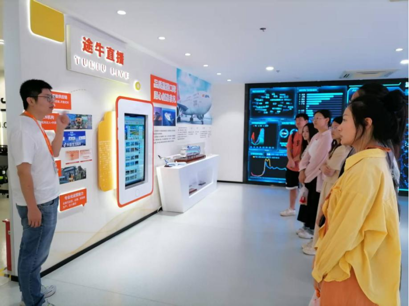 作为中国领先的在线休闲旅游公司,南京途牛创立于2006年,总部位于南京市玄武区徐庄软件园,长期致力于以创新技术提升旅游服务体验,获评“国家高新技术企业”。在南京途牛高级产品经理的引导下,师生们系统参观了企业数据中心、直播基地及技术研发部门,重点考察了旅游信息系统的架构设计、实时数据处理流程及人工智能在行程定制中的应用。技术专家通过实际案例演示了从用户需求分析到产品智能推荐的闭环运作机制,并让学生现场体验了后台管理系统的操作界面。随后,师生们与南京途牛运营团队围绕“旅游数字化转型的挑战与创新”展开专题研讨,就数据安全、用户体验优化及行业技术趋势进行了深度交流。