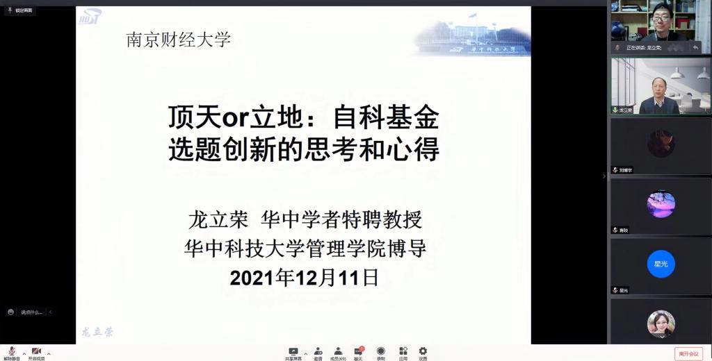 邀请,华中科技大学管理学院副院长、博士生导师、华中学者特聘教授龙立荣,通过腾讯会议作了题为“自科基金选题申报和评审的思考与心得”的报告。大乐透